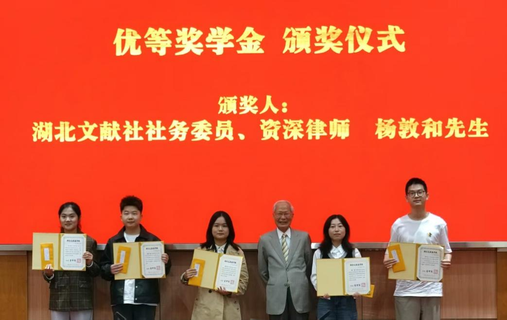 (通讯员/王子怡)10月14日,湖北文献社第十八届博硕士研究生论文奖学金颁奖典礼在永利yl23411隆重举行。湖北文献社社长童中仪女士、华中师范大学李良明教授、永利yl23411副董事长张冬卉教授等出席。来自武汉大学、华中科技大学、华中师范大学、中南财经政法大学、永利yl23411和三峡大学等高校的师生共70余人参加。公司田子渝教授、徐方平教授,博士研究生侯晗倩、周锐和硕士研究生王子怡等参加。