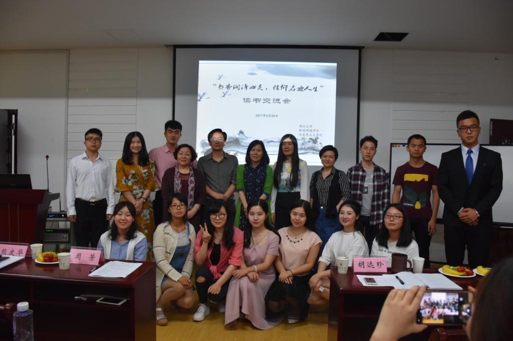 5月24日下午,我院与新闻传播公司联袂举办了主题为“书香润泽心灵 信仰启迪人生”的读书交流会,来自两个公司的硕士研究生参加了活动。出席本次读书交流会嘉宾有:新闻传播公司经理廖声武教授、副经理胡远珍教授、永利yl23411副经理周芳教授、熊友华教授以及新闻传播公司硕士研究生导师黄月琴副教授、路俊卫副教授。新闻传播公司经理廖声武教授对此表示高度赞赏:“此次读书会是一次有益的的合作与尝试,有利于产生新的知识”。