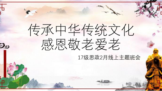 2月8日下午,17级思政班召开了以“传承中华传统文化,感恩敬老爱老”为主题的线上班会活动。