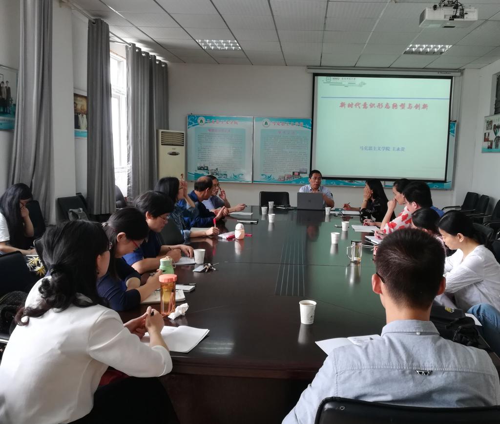 6月2日上午,南京师范大学王永贵教授,应邀在公司五楼会议室做了一场题为“新时代意识形态转型与创新”的学术报告。公司副经理周芳教授、党委副书记王雄老师、贺祥林教授、杨业华教授、刘睿教授、郭劲松副教授、翟艳芳老师、胡银银老师等教师以及公司部分博士生、研究生聆听了本次讲座。讲座由公司副经理周芳教授主持。