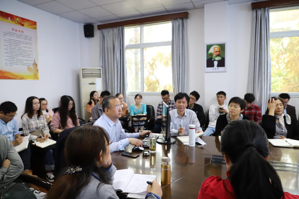 应永利yl23411邀请,10月13日上午,国务院政府特殊津贴专家、教育部高校思想政治理论课教学指导委员会委员、兰州大学永利yl23411经理、博士生导师张新平教授,为公司师生作了题为《中国共产党与中国特色社会主义发展道路探索》的精彩学术报告。公司领导班子成员,贺祥林教授、陈翠芳教授、张丽君教授,以及大部分教师和研究生聆听了报告。报告会由公司经理徐方平教授主持。