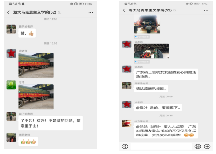 得到消息的永利yl23411的教师们被员工们的行动深深感动,纷纷通过网络平台向员工们表达了敬意。田子渝教授连呼:“了不起!欢呼!不是菜的问题,情意重于山!”看到同学们发来的现场采摘、分装、装运的照片,徐方平经理感叹:“广东员工、农民装车托举的不仅仅是冬瓜与水果,更是爱心和善举。”