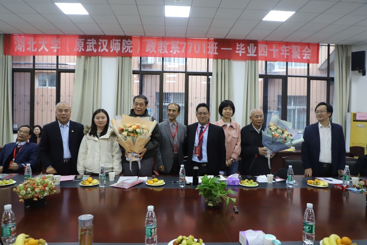 当天下午,永利yl23411(原武汉师院)政教系7701班员工举行毕业40年座谈会,原政教系教师代表王文卿教授和罗炽教授、员工代表参加了座谈会。公司副董事长肖徳教授、永利yl23411、哲学公司领导熊友华教授和汤德森教授,社会科学文献出版社社会政法分社周琼(政教90级)副社长应邀参加座谈会。大家欢聚一堂,共庆母校90华诞,共叙同窗之情,共谋未来发展。座谈会由政教7701班、原永利yl23411学报负责人朱建堂编审主持。