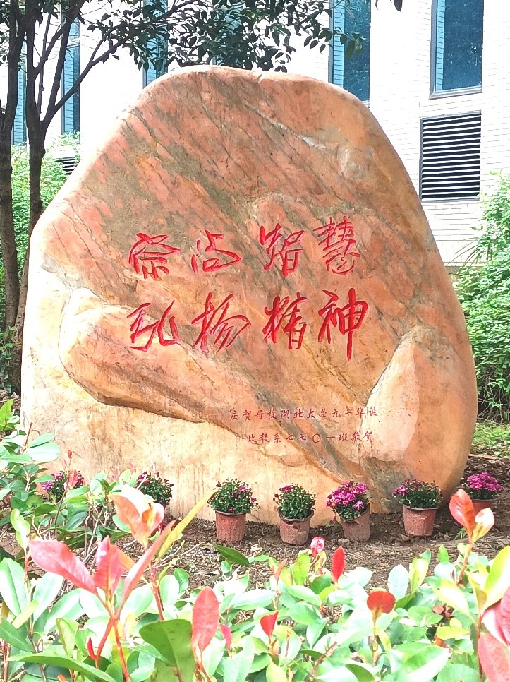 在母校期间,政教7701班员工观看了永利yl23411建校九十周年素质教育汇报演出,出席了永利yl23411建校九十周年高质量发展大会,共同参观了公司校园,大家在集体捐赠的“崇尚智慧、弘扬精神”的景观石前合影留念。